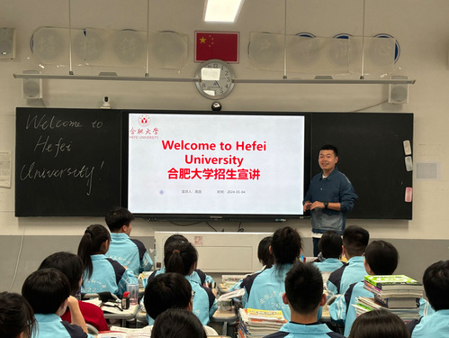 高田首先看望了母校的各位老师,向他们辛勤培育表达感谢。随后,走进班级宣讲,面对面向高三学弟学妹们介绍了合肥大学的发展历程、优势特色、专业设置、校园文化等方面信息,结合学校招生宣传视频,让他们充分了解合肥大学的人才培养模式、办学治校特色,帮助高三学子进一步明确自我规划的方向和未来职业的取向,激发大家对美好未来的憧憬与向往。同时,他还分享了自己在外国语学院的学习经历和成长故事,向大家介绍了学院的基本情况,鼓励他们勇敢追逐梦想,不断努力进取。