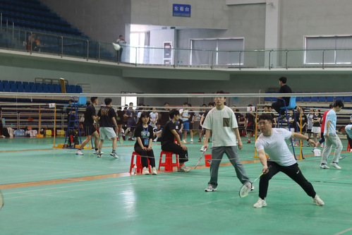 赛场上,外国语学院校友们身着运动装,精神抖擞。他们或挥拍扣杀,或轻盈吊球,羽毛球在空中划出一道道优美的弧线。每一个精彩的击球都引起了观众的阵阵掌声和欢呼声。比赛过程中,校友们展现了出色的个人技术和默契的团队配合,让在场的每一个人都感受到了羽毛球运动的魅力和乐趣,外国语学院校友联络员张正华全程观赛并为选手们加油助威。