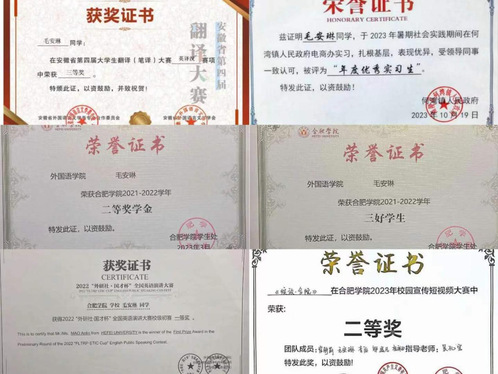 无冥冥之志者,无昭昭之明;无惛惛之事者,无赫赫之功。”这句古言强调了志向和专心的重要性,鼓励人们努力追求梦想、采取行动。“合肥市最美大学生”、2021级英语专业的毛安琳同学,入校以来不仅学业成绩名列前茅,更是积极参与各项比赛、志愿活动,在个人能力得到提升的同时,也给学院增添了光彩。