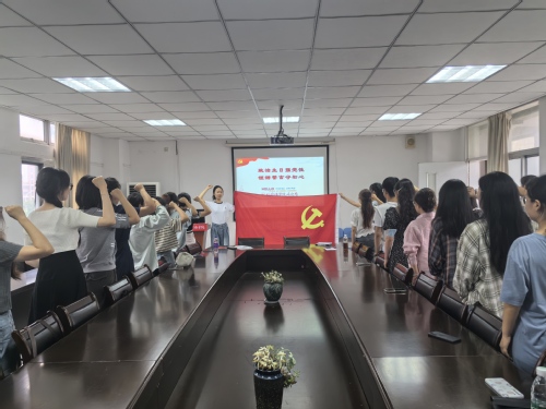 随后,全体与会党员重温入党誓词:“我志愿加入中国共产党,拥护党的纲领,遵守党的章程,履行党员义务......”在党旗前,党员们一同高举右手,庄严宣誓,重温入党时的初心和使命。
