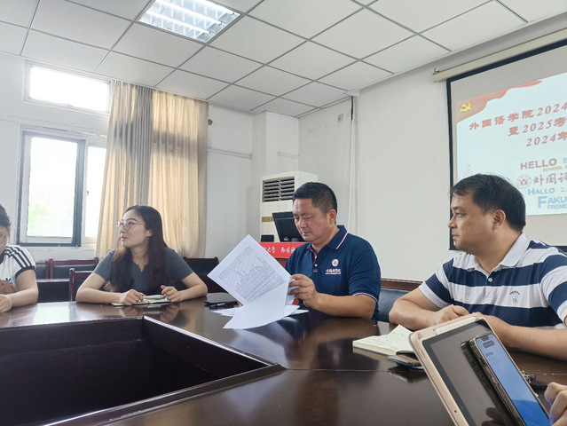 为确保广大暑期留校学生安全,督促2025年考研学生夯实目标、坚定意志、坚持奋斗,7月11日中午,外国语学院召开2024暑期留校安全教育暨2025考研动员大会,学工办主任李发俊和2025届毕业班辅导员王雨濛以及暑期留校考研全体学生参加会议,院党委书记吴孔宝主持会议。