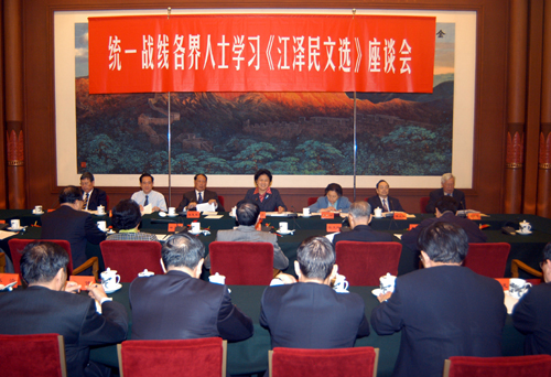 统一战线各界人士12日在京举行座谈会,畅谈学习《江泽民文选》的心得体会