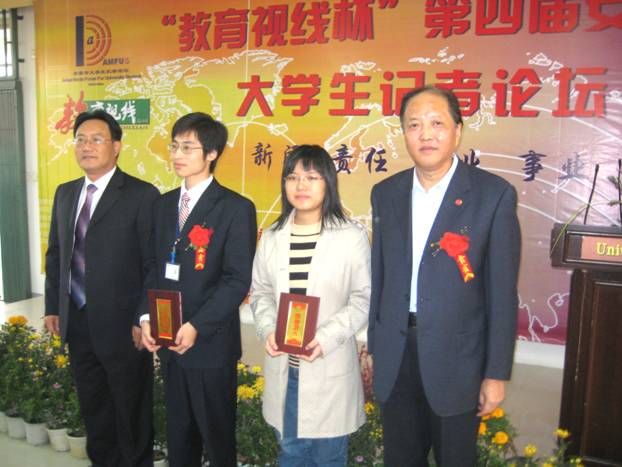 在2007年教育部思政司公布的全国高校校园文化建设优秀成果评选中,“安徽省大学生记者论坛”获得三等奖,充分展示了我省大学生的社会主人翁精神、自主创造性和思想层次性。