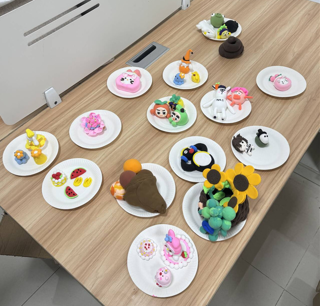 制作完成后,同学们围坐一圈,展示自己的作品,分享参与本次活动的感受。大家纷纷表示,手工粘土的过程让自己释放了压力,在专注捏塑中静心独处,感觉非常充实。充满巧思的作品不仅展现了同学们的创造力,更承载着大家对生活的热爱与期待。分享结束后,同学们自觉整理工具,封装粘土袋,并一起打扫活动现场。共同的劳动让整个空间的温暖得以延续,也让每个人在协作中感受到集体的融洽。