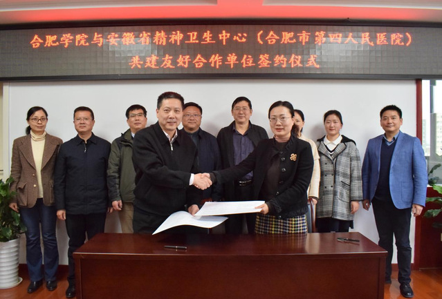 为加强医校合作共建,进一步推进学校心理健康教育工作,1129日下午,我校与安徽省精神卫生中心(合肥市第四人民医院)签订了共建友好合作单位战略协议。我校党委副书记刘建中,合肥市第四人民医院副院长罗蓓蓓,主任医师、名医工作室负责人季益富,合肥市精神卫生防治中心副主任徐小童等出席签约仪式,校党政办、宣传部、学生处、教育学院等相关单位负责人参加仪式。