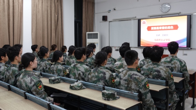 2月27日,我校在35栋204教室举办了一场题为“青春的底色是爱国”的专题讲座。马克思主义学院王能引副教授主讲,校学工部人武部副部长陶龙泽、2025年春季应征毕业生、校国旗护卫队全体队员参加讲座。
