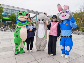 活动现场有2名志愿者负责引导队伍,并准备了定制小礼品。4名身着可爱玩偶服的志愿者早早到位,憨态可掬的造型刚一亮相便吸引了过往同学的目光。他们主动张开双臂,为大家送上治愈的拥抱,并配合拍照,用肢体语言传递关怀。温暖的氛围吸引同学和老师们驻足停留,在镜头前记录下温馨瞬间。“不用复杂流程,一个拥抱就能收获快乐,特别治愈。”现场参与活动的同学表示,这样的活动既缓解了日常学习压力,也让校园氛围更加元气暖心。