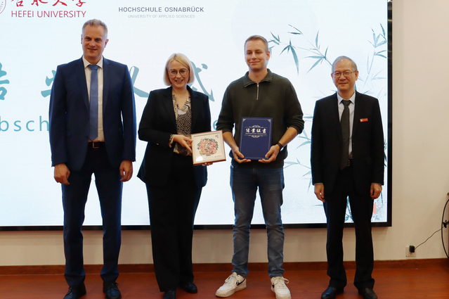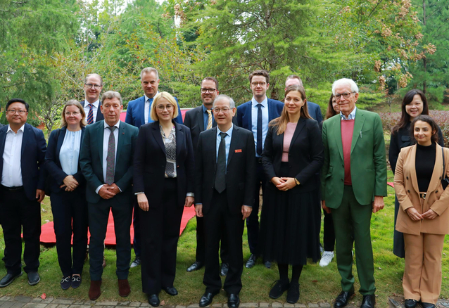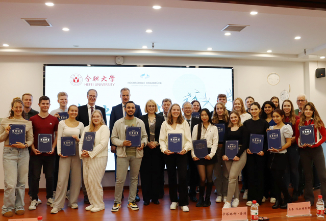 20241027日上午,德国奥斯纳布吕克市市长卡塔琳娜·普特女士及政界代表团访问我校,与我校领导共同参与中德友谊林植树活动以及德国学生徽文化秋令营结业仪式。党委书记王其东,合肥市人民政府外事办公室副主任刘洋出席活动,党委委员、宣传统战部部长贾峰,国际交流合作处处长张慧,国际交流合作处副处长孔春华、潘洪陪同出席。