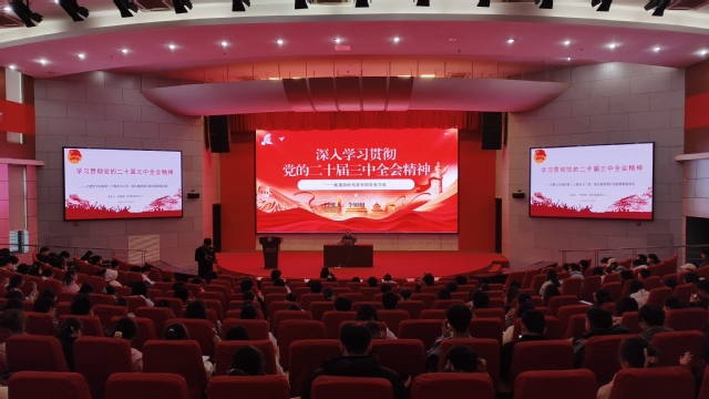 12月5日中午我校第三十期青马班暨菁英第四次授课于图书馆报告A厅开展。校团委副书记李妍妍担任主讲,授课主题为“学习贯彻党的二十届三中全会精神”。