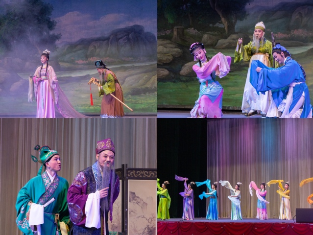 表演节目为黄梅戏经典剧目《天仙配》,共六场,分为《鹊桥》《卖身》《路遇》《上工》《织绢》《满工》和《分别》。舞台上“七仙女”唱腔悠扬,身段优美,演技精湛;“董永”表演真挚淳朴,生动传神。剧情一波三折。两个多小时的演出中,演员们通过舞蹈、身段和表情等手段,将角色的内心世界展现得淋漓尽致,用婉转悠扬的唱腔、生动传神的表演将观众带入一个充满传奇的戏曲世界,向观众们诠释出了黄梅戏艺术的无穷魅力。整场演出内容丰富,极富地方韵味特色,充分展现了高雅艺术的独特魅力。