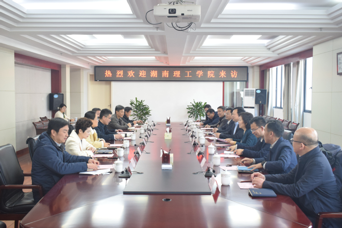 2月26日,湖南理工学院院长曾祥君带队来校调研交流。我校在行政楼会议室召开座谈会,党委副书记、校长任永,党委委员、副校长王晓峰出席会议,相关职能部门负责人参加会议。