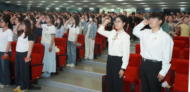 会上,举办了2025年上半年新团员入团仪式,360名新团员面向团旗庄严宣誓。先进制造工程学院教师钟伦锁、外国语学院英语专业学生陈露和经济与管理学院物流管理专业学生李家诚分别代表优秀共青团干部、优秀共青团员和新发展团员发言。与会领导为2024年度五四红旗团委、优秀团干、优秀团员、第二十届“榜样学子”、青年志愿者工作优秀组织、暑期“三下乡”社会实践活动优秀组织等获奖集体和个人颁发奖牌和证书。