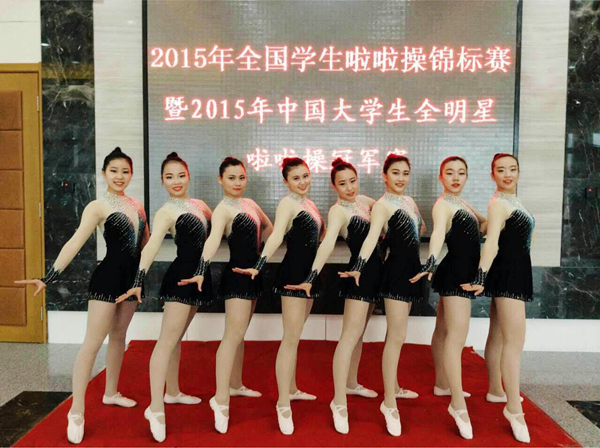 12月11日至13日,由中国大学生体育协会、中国大学生体育协会健美操艺术体操分会、中国中学生体育协会健美操分会等联合举办的2015年全国学生啦啦操锦标赛暨2015年中国大学生全明星啦啦操冠军赛在福建师范大学体育中心体育馆举行。我校周瑞英老师带领的14名同学组成的代表队参赛,经过3天的激烈角逐,共斩获花球啦啦操规定套路第一名,爵士啦啦操第三名。