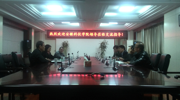 12月17日,安徽科技学院副校长汪建飞一行5人来访我校,副校长陈秀在行政楼九楼东会议室热情接待来宾。双方就科研工作、专业学位研究生培养等事宜展开深入交流讨论。校科技处处长吴克、生物与环境工程系主任俞志敏等陪同会谈。