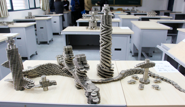 12月20日,合肥学院第二届“力与美”硬币大赛举行,活动现场,创意精彩的硬币搭建令人眼界大开,一件件用硬币垒起的作品十分精致、独具一格。本次比赛历经一个月,96队伍参赛,32支队伍晋级至决赛。比赛结合了艺术的创意设计与建筑的力学原理,拓宽了学生的思维与眼界,展现了大学生们的智慧青春与无限创意