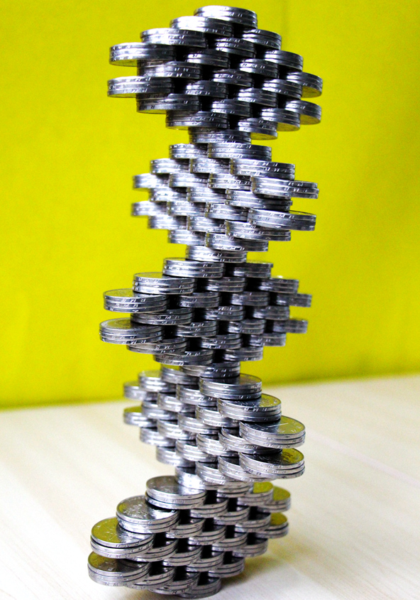 作品《丝绸之路》以优美的流线型结构,高难度的搭建技巧赢得最高分。作品中悬挑出去的部分象征丝绸之路从梵地连接到海上并持续延伸,螺旋上升“龙型”上海中心和包容的“华表”相结合,展现了新时代下激扬进取的民族面貌。简约大气的盘旋结构,别出心裁的镂空设计,作品《回家的路》向我们展示了硬币兼具力与美的独特魅力。11号团队通过先立柱后搭接,并在顶层修饰的方法率先完成了作品黑暗城堡13号队伍的作品《教堂是一件充满罗马式建筑风格的作品,它充分利用了镂空、镶嵌和螺旋延伸的设计。以迪拜人工岛命名作品棕榈岛,利用2500枚硬币的拼接咬合,重现了碧海蓝天的美景。