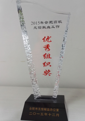 2015年底,我校受邀参加2015年合肥高校无偿献血工作座谈会,省直团工委、合肥市卫生局、安徽省血液中心相关领导以及合肥地区38所高校负责此项工作的工作人员参加会议。安徽省血液中心负责人通报了2015年各高等院校无偿献血现状及采集完成情况,并根据2015年各高校工作开展情况,对相关院校进行了表彰,我校荣获2015年合肥地区高校无偿献血工作“优秀组织奖”。