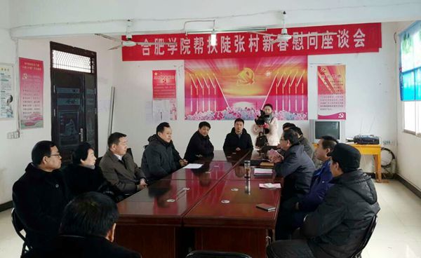 在陡张村会议室,泗县副县长、校友邰成华主持召开了简短扶贫对接会议。村党支部书记陆敬威介绍了陡张村村情,张伟颀对挂职陡张村以来的工作开展情况以及下一步的工作安排进行了详细的汇报。泗县教育局局长孙志远、瓦坊乡党委书记孙继东对学校在泗县教育帮扶以及陡张村发展给予的大力支持表示感谢。蔡敬民、张文兵对陡张村脱贫致富工作取得的成绩感到非常高兴,对张伟颀在艰苦的环境中努力工作给予充分肯定。蔡敬民在讲话中还表示,学校将按照省委、省政府的要求,贯彻落实对口帮扶的各项政策、措施,实施项目驱动,扎实推进,精准扶贫,确保陡张村按期实现脱贫致富目标。针对下一步工作,蔡敬民要求学校相关部门要加强与泗县教育局以及陡张村的对接,以问题为导向,研究解决扶贫帮扶中的重点和难点工作。