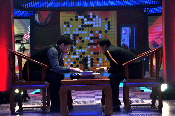 比赛还未开始,现场观众便热情似火,纷纷为自己支持的棋手加油助威。紧张的比赛中,观众更是认真观战,并积极参与其中,发表自己对每一步的看法与见解。由中国科学技术大学制造的“美女机器人”担任“主持”让现场气氛更加高涨。