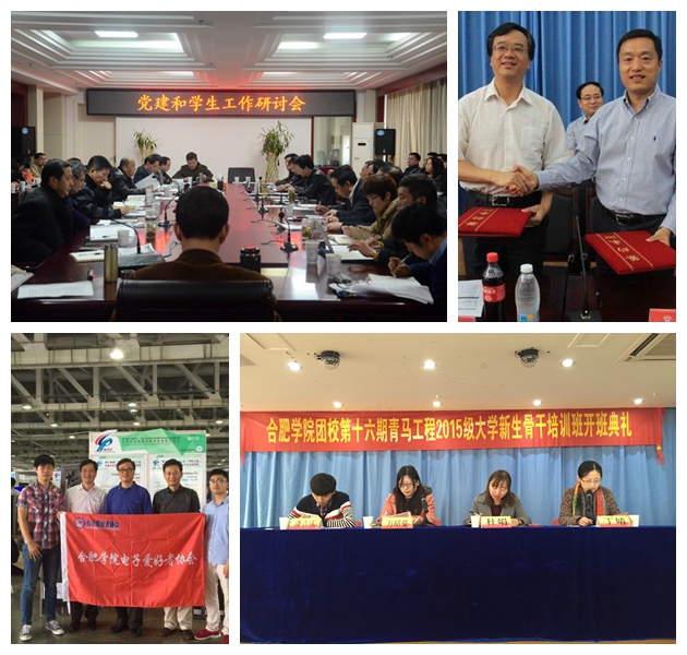“十二五”期间,学校成立了合肥学院大学生事务中心,中心是我校推进学风建设,实现更好地服务学生目标的重要载体。在学工信息化建设方面,积极做好学工系统的研发工作, 2014年,学生工作信息化建设步入快车道:学院毕业生离校系统、合肥学院迎新网络平台上线运行,建立了电子查询系统。每年的毕业典礼、迎新活动、开学典礼丰富多彩、特色鲜明,独创的“迎新墙”引起中央、省市媒体广泛关注。2015年,毕业典礼创意留念方式备受好评,在毕业典礼后的食堂免费就餐重温母校熟悉味道,创意毕业视频和“青春不散场”、“合肥学院2015届毕业典礼暨学位授予仪式仪式”、“合肥学院学生证”、“合肥学院学士学位证”等幕布为毕业生们留念青春创造更多美景。(宣传部、学生处)
