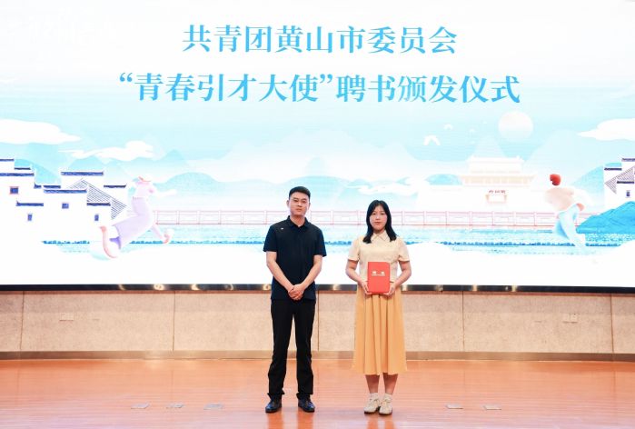 仪式上,来自古徽州文化旅游区的景区代表登台推介,介绍古徽州秋季产品,生动演绎古徽州的山水人文之美;刘力在致辞中对秀美黄山的创新发展作简要介绍,表示期待将古徽州打造为汇聚青春力量的大学生友好社区,为青年发展提供舞台;白义香在讲话中表示,我校高度重视此次合作,未来将充分发挥学校资源和人才优势,邀请有实践经验的文旅从业者走进校园打造精彩“第二课堂”,共同谱写市校发展新篇章。现场颁发了“青春引才大使”聘书,让更多学子感受到古徽州对于青年人才的热情,号召更多黄山籍学子返乡发展。