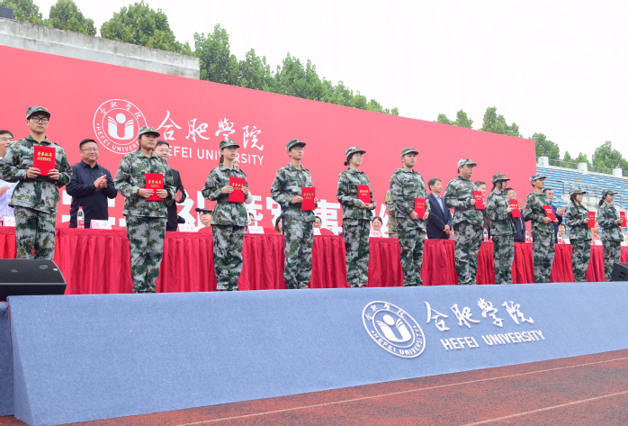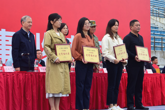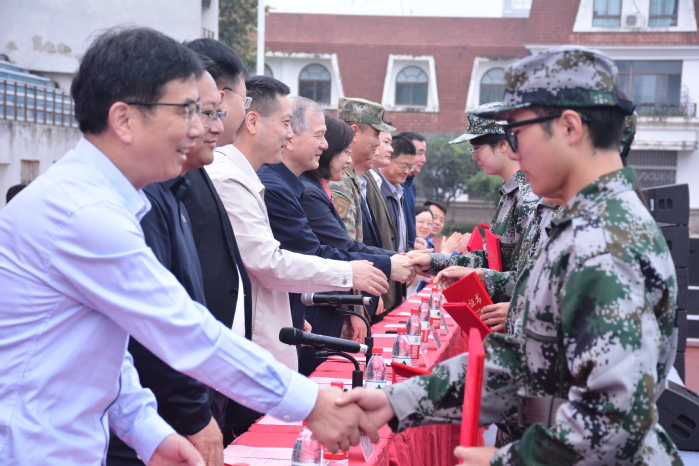刘建中宣读了2023级本科生军事训练表彰文件,与会领导为军训先进集体和先进个人代表依次颁奖。王其东表示,参与军训的2600余名新生,刻苦努力、坚持训练,接受了入学后第一次身体上的锤炼和意志上的考验,互帮互助、共同进步,以集体为荣、以班级为荣,迈出了大学生活的第一步,共有4个二级学院获“军事训练优秀组织奖”,260名同学获得“军事训练先进个人”称号。希望在未来的四年大学生活中,同学们能继续保持军训时的优良传统,加强体育锻炼、努力学习、快乐生活,圆满完成大学学业。