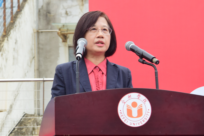 吴春梅作题为《扬帆起航,在合院成就和遇见最好的自己》的讲话。她首先代表学校,向顺利进入合肥学院的各位同学表示热烈的祝贺。她指出,合肥学院是一所在“改革中诞生,开放中成长,创新中发展”的大学,被誉为“中国应用型本科高校第一方阵的排头兵”、“中德务实合作的成功典范”、“合肥市工程师培养的摇篮”。同学们在最美的年华选择了合肥学院,这是一种缘分,一种信任,更是一份责任。从此以后,我们将血脉相连,共同成长。希望同学们自信自强,有志气有骨气有底气,薪火相传,立大志、明大德、成大才、担大任,在强国有我、不负韶华中绽放美丽青春;希望同学们自立自主,有知识有见识有胆识,提高自主学习能力,在“读万卷书”的同时“行万里路”,积极参加“第二课堂”、社会实践,真正做到知行合一、敢闯会创;希望同学们自觉自律,有干劲有拼劲有韧劲,养成良好的道德修养,不断强化思想自觉、行为自律,涵养“交叉融合”的系统思维,拓展“中西贯通”的国际视野,掌握“引领前沿”的扎实学识。青春孕育无限希望,青年创造美好明天。祝愿全体新生在南艳湖畔度过精彩、难忘的大学时光,成就和遇见最好的自己。