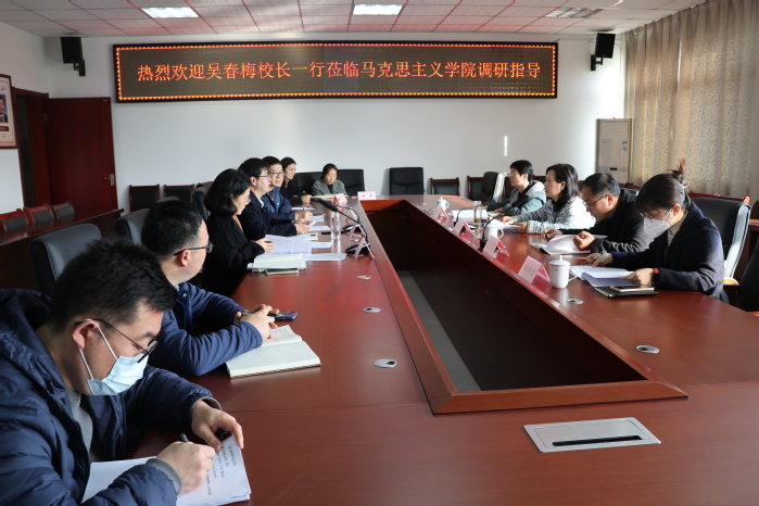 在马克思主义学院,吴春梅围绕“马克思主义理论学科硕士学位点申报和重点学科建设”开展专题调研指导。校党政办副主任毛小芳、研究生处副处长高大明等陪同调研。学院党政领导班子全体成员及部分教师参加调研会。会上,马克思主义学院院长陈志超汇报了学院硕士点申报工作,聚焦申报历程、主要措施、完善过程和未来工作安排做了详细介绍。副院长苏冰和金小方教授汇报了马克思主义学院重点学科建设等工作。