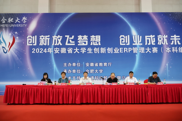 7月20日,安徽省大学生创新创业ERP管理大赛(本科组)在我校举办,来自34所高校的100支优秀代表队、近700名师生参赛。校党委委员、副校长白义香出席,安徽省大学生创新创业教育办公室主任、校大学生创新创业教育处处长董承军,合肥师范学院经济与管理学院院长黄虹,经济与管理学院院长陈江华,新道科技股份有限公司安徽分公司总经理王小明等参加开幕式。开幕式由经济与管理学院副院长于娜主持。