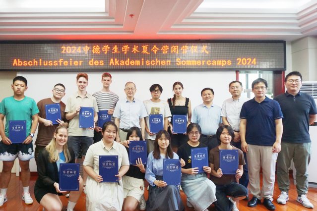 王其东给参加本次夏令营的中德学生颁发结业证书,对成功举办给予了高度评价,期望同学们能够珍视这段宝贵的经历,将所学所获转化为推动两国友谊与合作的积极力量。