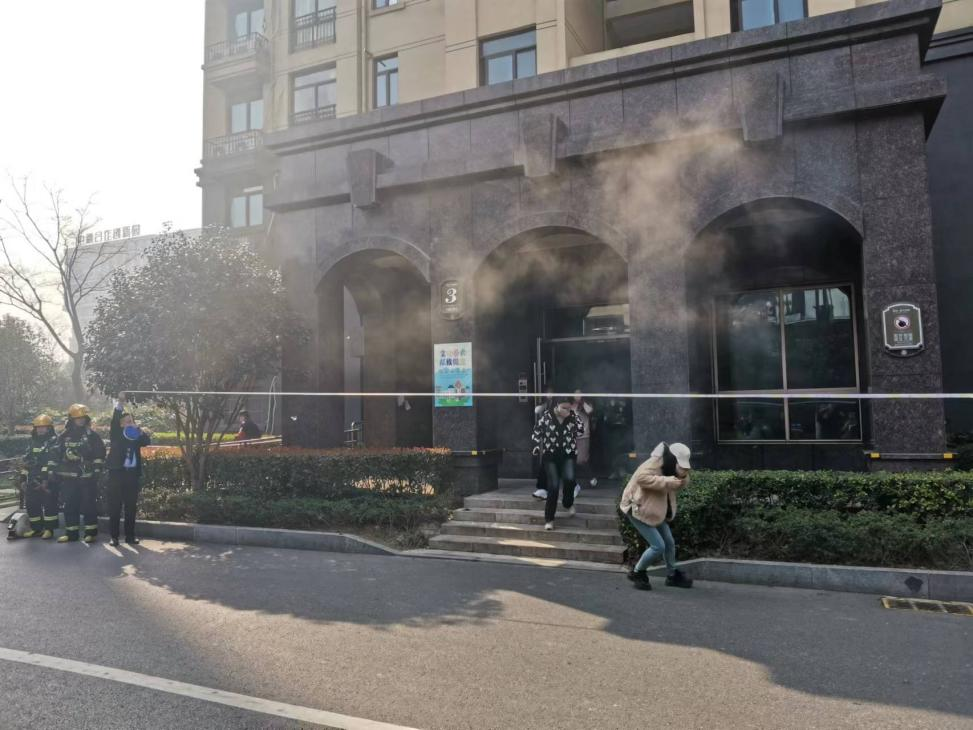活动伊始,伴随着响亮的警笛声,浓烟滚滚升起,居民们在我校志愿者的引导下,迅速按照疏散路线撤离,井然有序地逃出失火地点,在保护自身安全的同时,为灭火和搜救赢得了宝贵时间,居民们所表现出的良好应急应变能力得到了消防队员的认可。