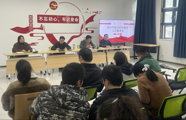 为进一步推动 2025 届毕业生就业工作,提升就业质量,设计学院于3月11日下午召开 2025 年度就业工作推进会。学院主要领导、毕业班辅导员、各专业负责人与毕业设计指导老师参会,共同商讨就业工作的推进策略。