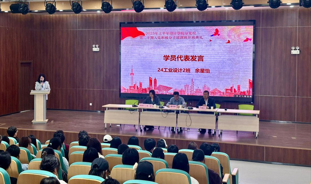 设计学院党委书记鲁先瑾发表讲话,他强调了举办入党积极分子培训班的重要性和意义,指出这不仅是提升入党积极分子思想觉悟和理论水平的关键环节,更是为党培养高素质后备力量的重要举措。在讲话中,鲁先瑾书记对大学生党员发挥先锋模范作用提出了殷切期望。