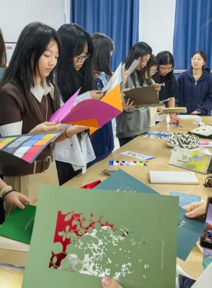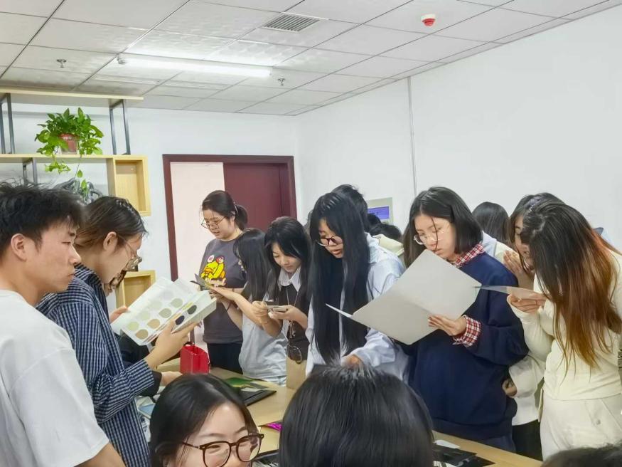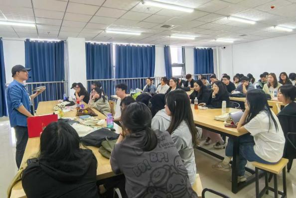 2025年4月23日下午,有着23年品牌策划设计行业经验、中国包装联合会设计委员会委员、JAGDA日本平面设计协会会员、安徽美协设计艺委会委员、合肥四夕堂品牌设计有限公司罗以银总经理,以包装材料和后期印刷为切入点,通过落地商业实例,为设计学院22级视觉传达专业的学生解答行业需要什么样的包装设计师?优秀包装设计如何在创意与落地之间找到平衡点?学生的包装作业距离行业标准还有哪些提升空间等问题。学生收获满满,并对包装材料的特性、印刷工艺的选择有了更直观的认识。
