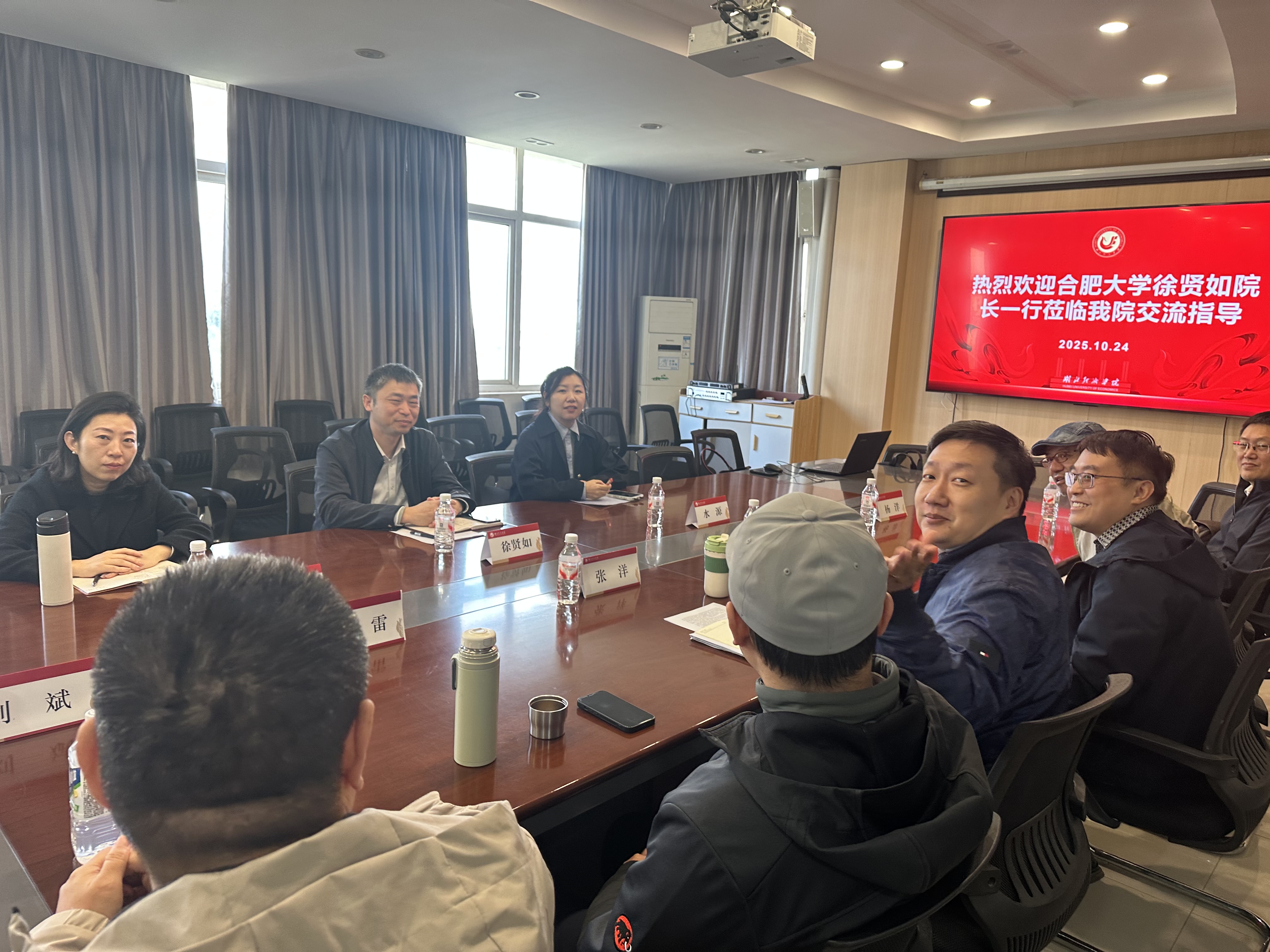 交流期间,徐贤如副院长与湖北经济学院艺术设计学院张洋副院长就艺术设计专业的发展前景、人才培养方案修订及课程体系建设等议题进行了深入探讨。双方教师代表围绕环境设计、艺术与科技专业的前沿趋势与人才培养模式展开专题研讨,分享了宝贵经验,湖北经济学院艺术设计学院环境设计系主任魏雷、副主任杨洋、实验室主任刘斌、副教授陈国俊、副教授任军君、副教授李祥文及教师代表姜明、杨杰等九人出席。