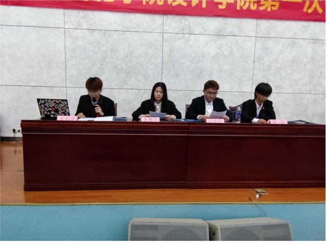 合肥学院设计学院第二次学生代表大会暨第一次团员代表大会于2022612日上午10点在图书馆B厅举行。此次会议请假两人,实际到场人员超过全体人员2/3,会议有效。
