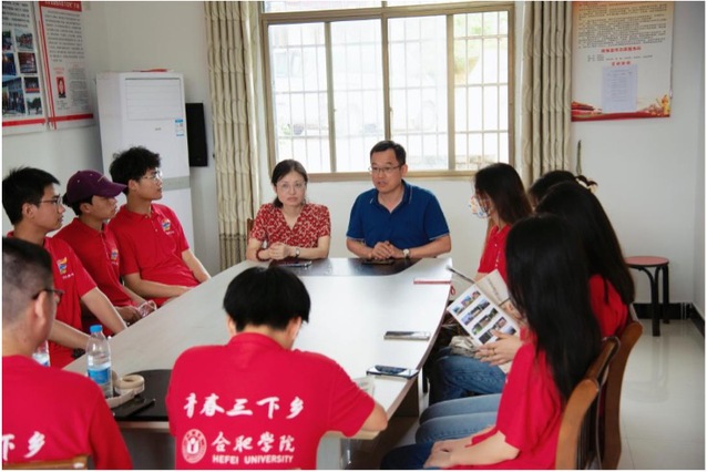 623日上午八点半,合肥学院设计学院暑期“三下乡”社会实践重点团队在带队老师吴娴的组织下,开始了今天的活动日程。上午八点四十,吴老师和当地村干部一起带领同学们到梧川村党群服务中心,在党群中心会议室与梧川村党总支第一书记申圣庆召开对接会。申书记首先对合肥学院设计学院暑期三下乡社会实践重点团队师生们的到来表示热烈欢迎,其次,申书记向队员们介绍了梧川村的具体情况,梧川村村民有1600余人,485户,房屋建筑以村支部为中心发散性布局。村干部团队年轻化、专业化、知识化,高中以上学历干部占百分之八十以上,以洪海飞为代表的年轻知识分子,积极响应党的乡村振兴政策号召,大学毕业后选择回到家乡扎根基层,担任梧川村村长。梧川村以大会山红色文化旅游为依托,附带草莓、菊花等特色农业,走“红色强村,绿色富农”发展道路,引起各界关注,于2021年成功脱贫,由绩溪县贫困村转为示范村,2019年获得“中国美丽休闲乡村”、2021年获得“先进基层党组织”等各项殊荣。申书记希望设计学院三下乡团队的同学们,利用好在梧川村一周的活动时间,利用同学们的专业特长,制作红色旅游宣传视频、宣传页、特色农产品包装设计,为美丽乡村建设助力。