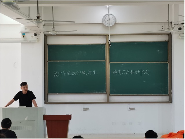 大会第二项,沈杨老师对新生报到当天志愿者具体工作内容进行介绍,要求志愿者提醒新生提防诈骗、拒绝推销,并对志愿者进行分组。