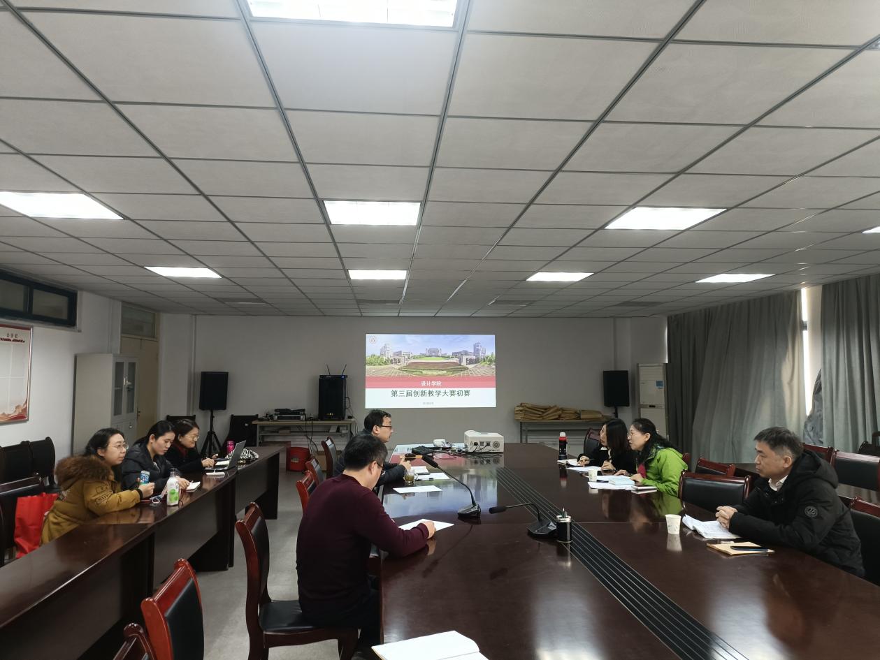2023年2月15日下午,设计学院组织开展了第三届创新教学大赛的院内初赛。经过前期各系报名和推荐,本次初赛有9位教师参加,学院邀请了3位资深教师担任评审。