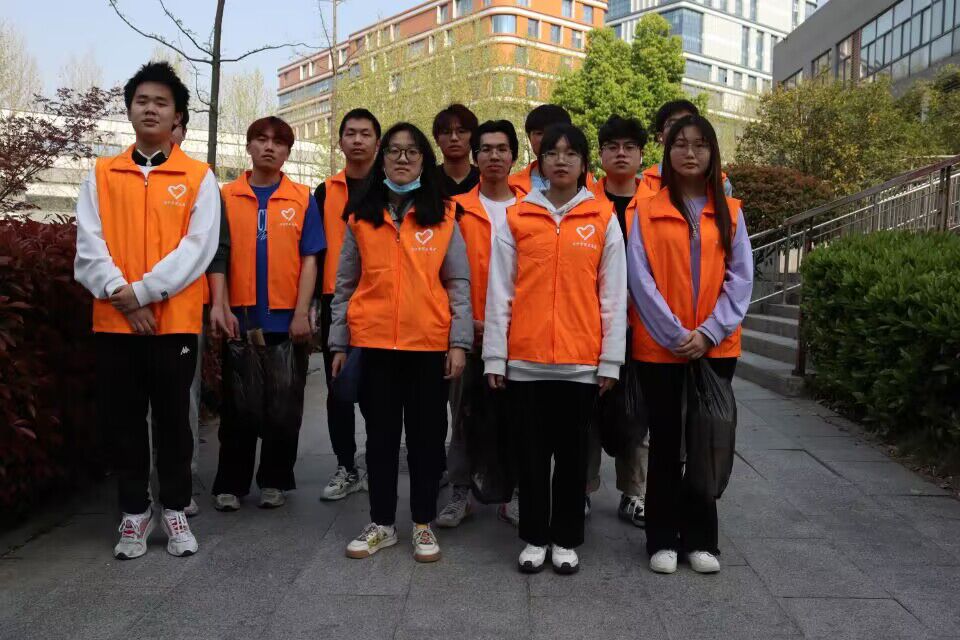 志愿者分别分为捡垃圾组、发宣传单组和规范停车组等四组队伍。每组约六人,分别在两名班委的带领下在二三期校园内进行。