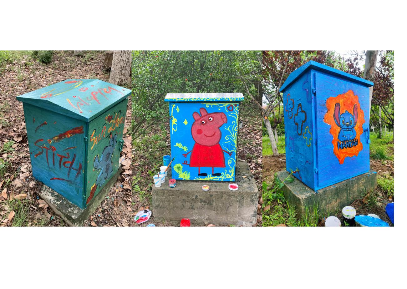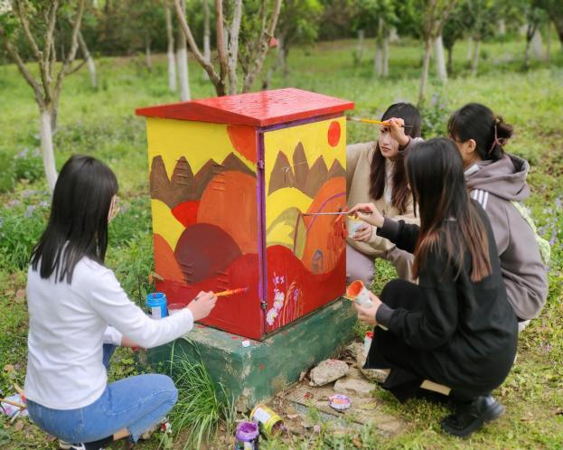 此次活动学生党员分工明确、互帮互助,通过彩绘的方式,让配电箱和井盖等老旧设施焕发新颜,展现了我院专业优势和学生党员积极向上的精神风貌,也让公园里增添了一张张靓丽的名片。
