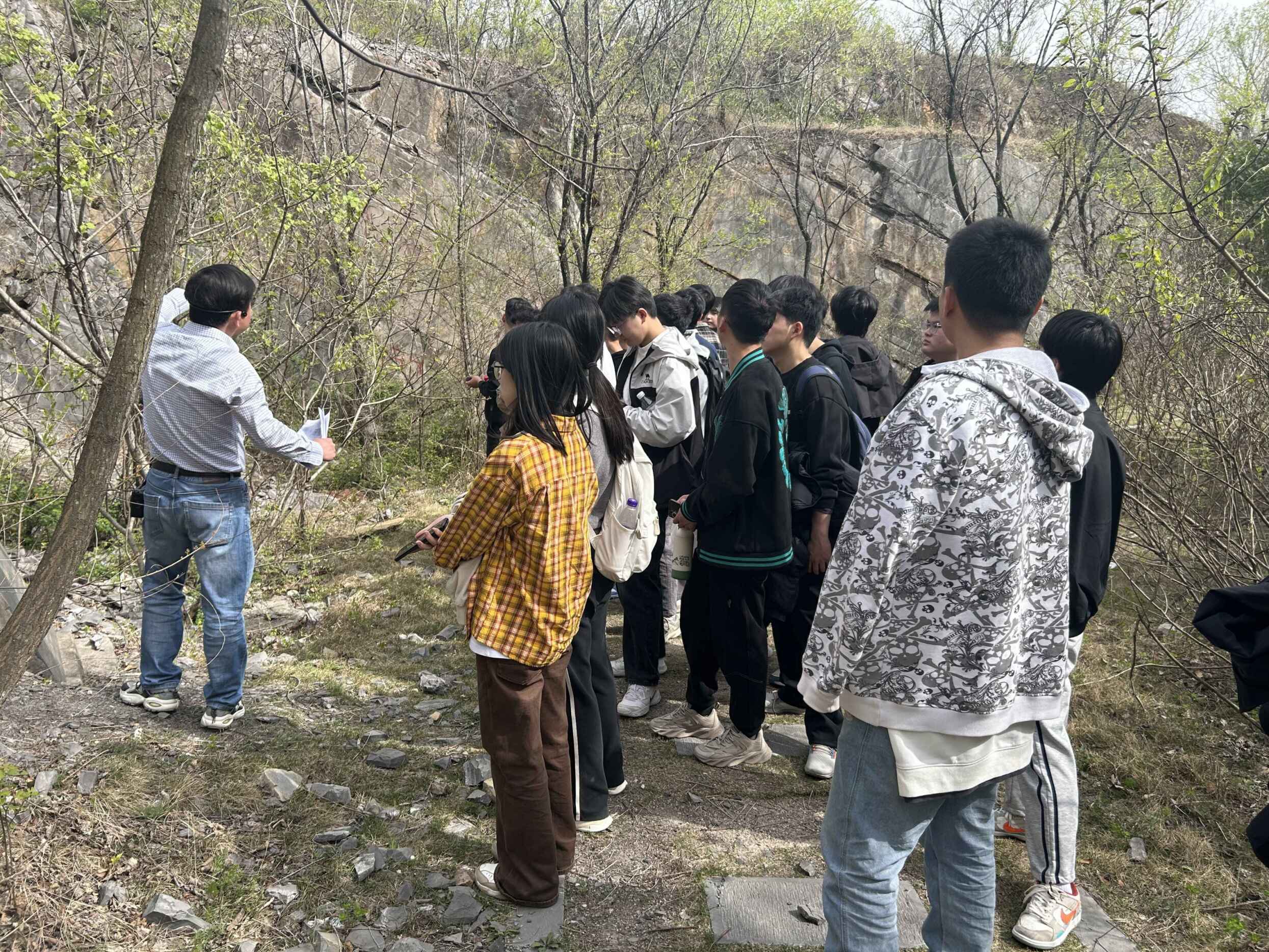 2025331日,城市建设与交通学院23级土木工程专业全体同学及指导老师前往巢湖开展为期一周的工程地质实习。实习首站来到巢湖龙动物群化石产地开展野外实习活动,旨在让同学们更好地了解地质变迁,感受地球历史的厚重,同时加深对物种演化过程的认识。