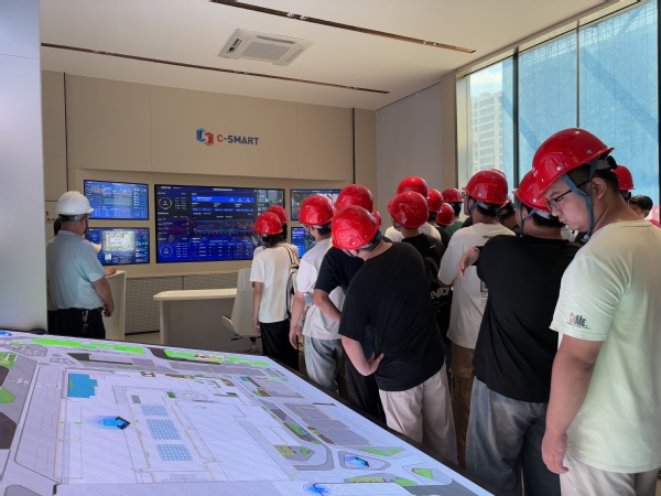 海恒国际体验式商业街区项目位于合肥经开区习友路与锦绣大道交口东北角,拟建商业综合体、超高层酒店及相关配套设施,规模大,业态复杂,对施工技术、项目管理以及各专业间的协同配合提出了极高要求。这为土木专业学生提供了绝佳的实践平台和观摩学习机会。该项目由中建国际工程有限公司、中国能建安徽电建二公司承建,实习期间,现场负责人首先对同学们进行了严格的安全教育,强化“安全第一”的工程意识,接着重点向同学们介绍了装配式样板间建设、高支模施工工艺以及智慧工地等内容,最后针对施工过程中存在的问题与同学们进行了深入交流,使得学生对智能化建筑施工及管理有了更新的认识。