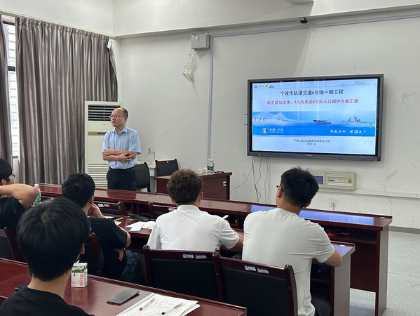 讲座伊始,申文明博士结合自身求学与工作的成长历程,鼓励同学们要脚踏实地、胸怀理想,把握学习与实践的机会,勇敢面对挑战,以持续学习和不懈努力实现自我价值。在专业分享环节,申博士以亲身参与的《新芝路站主体、A号风亭及B号出入口围护方案》为案例,深入剖析了地铁车站建设过程中所面临的岩土工程问题,系统阐释了如何将课堂中学到的《土力学》和《基础工程》理论知识转化为解决实际工程问题的有力工具。他结合剖面图纸、工程参数及设计思路,生动展示了从理论到实践的转化路径。讲座最后部分,申博士从宏观层面介绍了《城市轨道交通规划与设计的基本概念》,让同学们对轨道交通的战略意义、系统构成及未来发展趋势有了更为清晰的认识。
