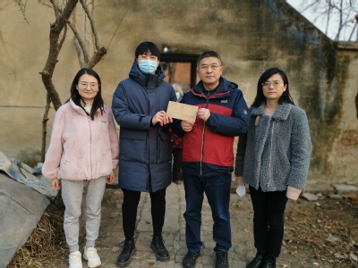为广泛宣传国家资助政策,送资助政策进村、入户,2023年1月9日,城市建设与交通学院党委副书记(主持工作)张永军、党委副书记高乔楠、辅导员魏舒荍一行,深入家庭经济困难学生家中,赴瑶海区平板基地公租房和凤台县童郢村走访慰问了我院两名学子,为困难学生家庭送去诚挚问候和亲切关怀。