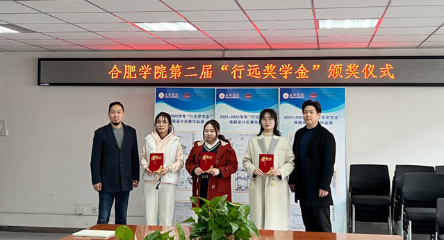 致辞结束后,张劲松宣读合肥学院第二届“行远奖学金”获奖名单。参会嘉宾为获奖学生颁奖。