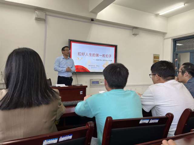 2023年5月23日,城市建设与交通学院第七期入党积极分子培训班第五讲《扣好人生的第一粒扣子》顺利开展。此次党课由合肥学院纪委副书记罗会必主讲,城建学院党委副书记高乔楠主持。