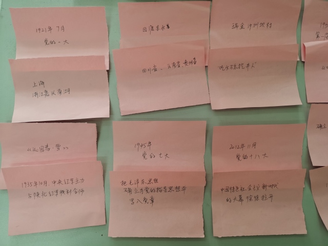 活动伊始,支部党员分为两组进行党史知识卡片匹对比赛,用时短的队伍获胜。每组党员争分夺秒,利用平时集中学习和自主学习理论知识开始两两组合。最终,两组队伍都顺利完成任务,正式党员队用时较短,获得胜利。比赛完成后,支部书记刘艳双详细讲解了卡片上的党史知识。