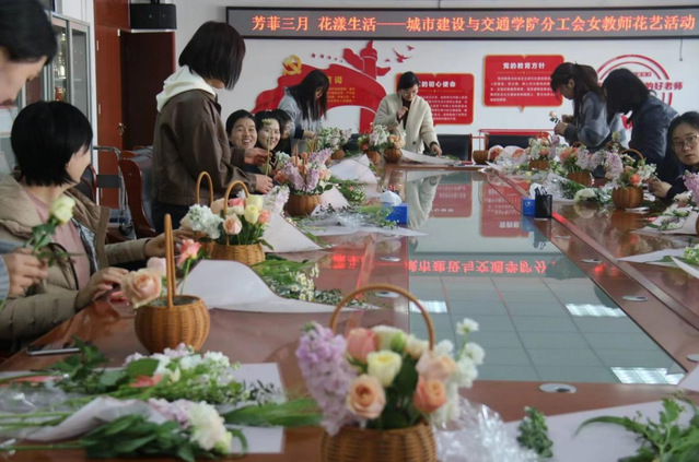 三月春风,百花盛开。为庆祝国际三八妇女节,丰富业余生活,城市建设与交通与交通学院于41栋305会议室举办“芳菲三月,花漾生活”花艺活动,学院全体女教师参加。
