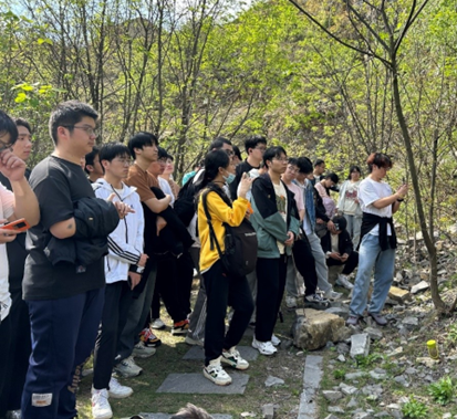 随后,在指导老师的带领下,同学们参观了呈垂直或近似垂直柱状节理的泥晶灰岩。这种独特的地貌现象,是由于地壳运动和地质作用共同影响形成的。通过对这些地质现象的观察和研究,学生们更加直观地了解了地球构造运动的演变过程,以及地表地质作用对地球表面形态的塑造。